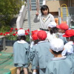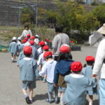 みんなで手をつないで、幼稚園のお庭をお散歩しました。