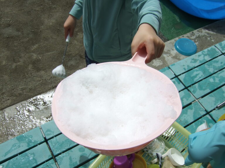 年長さん、あわあわ気持ちよさそう! 年少さん、プレ年少さん、お洗濯中!